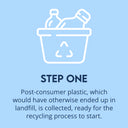 Every single one of our products is made from 100% recycled materials. More specifically - plastic. It’s shredded, then woven into the lovely material that makes all of our product.