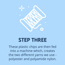 Recycled polyester, also known as rPET, is a greener material comparing to virgin polyester because it actually has a positive impact on the environment.