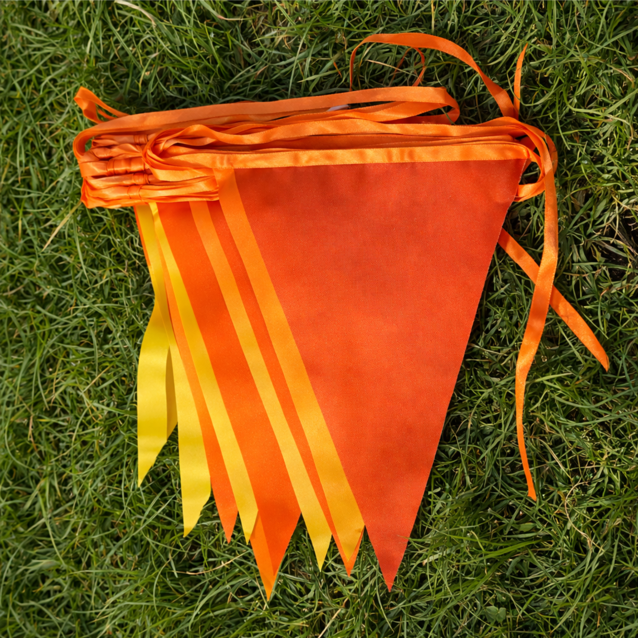 Bring the sunshine to any celebration with our orange satin bunting. Bold, bright, and easy to hang, it instantly transforms weddings, parties, and festivals into picture-perfect moments