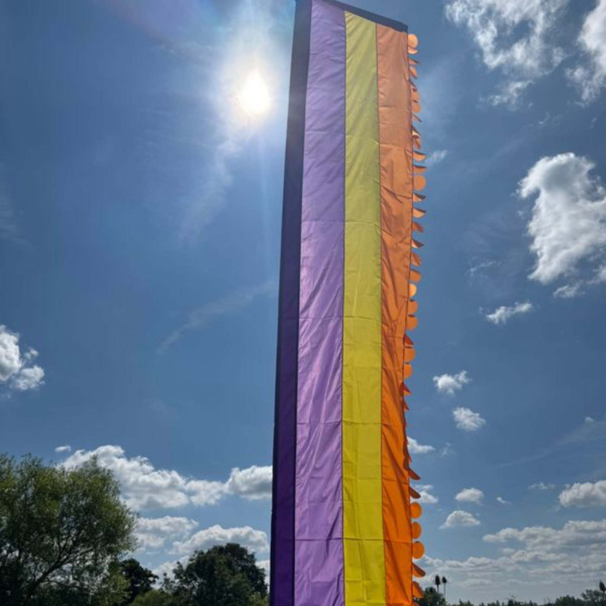 Add instant festival magic with our Purple, Orange & Yellow Raya Flag, designed to bring bold colour and movement to any event. Made from recycled materials, this eco-friendly flag ripples beautifully in the breeze, catching the light and creating a true wow factor. With its striking mix of purple, orange, and yellow panels finished with fluttering tassel edges, it’s the ultimate backdrop for festivals, weddings, beach parties, and outdoor celebrations.