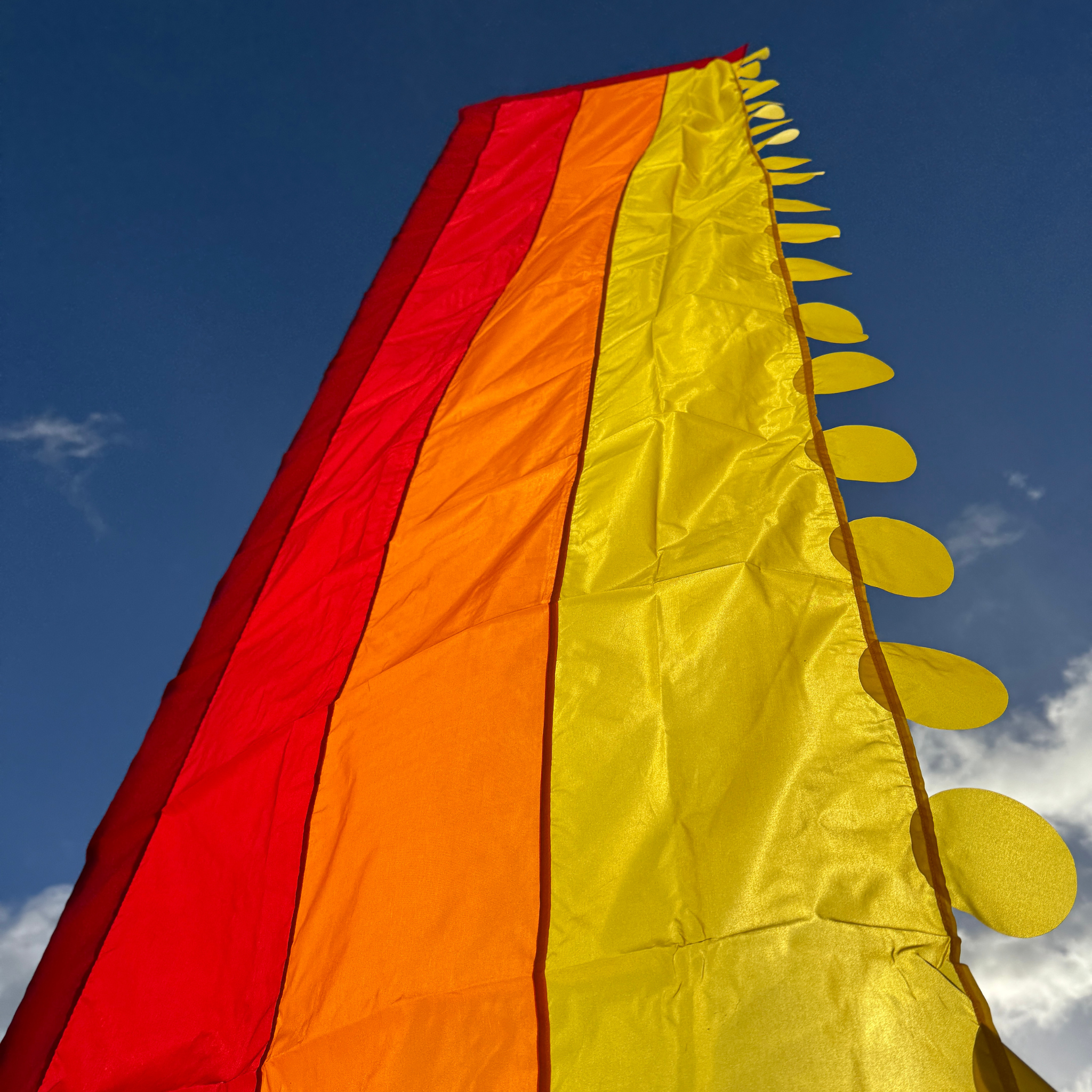 Turn up the heat with our Red, Orange & Yellow Raya Flag, a fiery showpiece that transforms any space into a celebration. Crafted from recycled polyester, this sustainable flag combines bold sunset shades with flowing tassel details that move beautifully in the wind.
